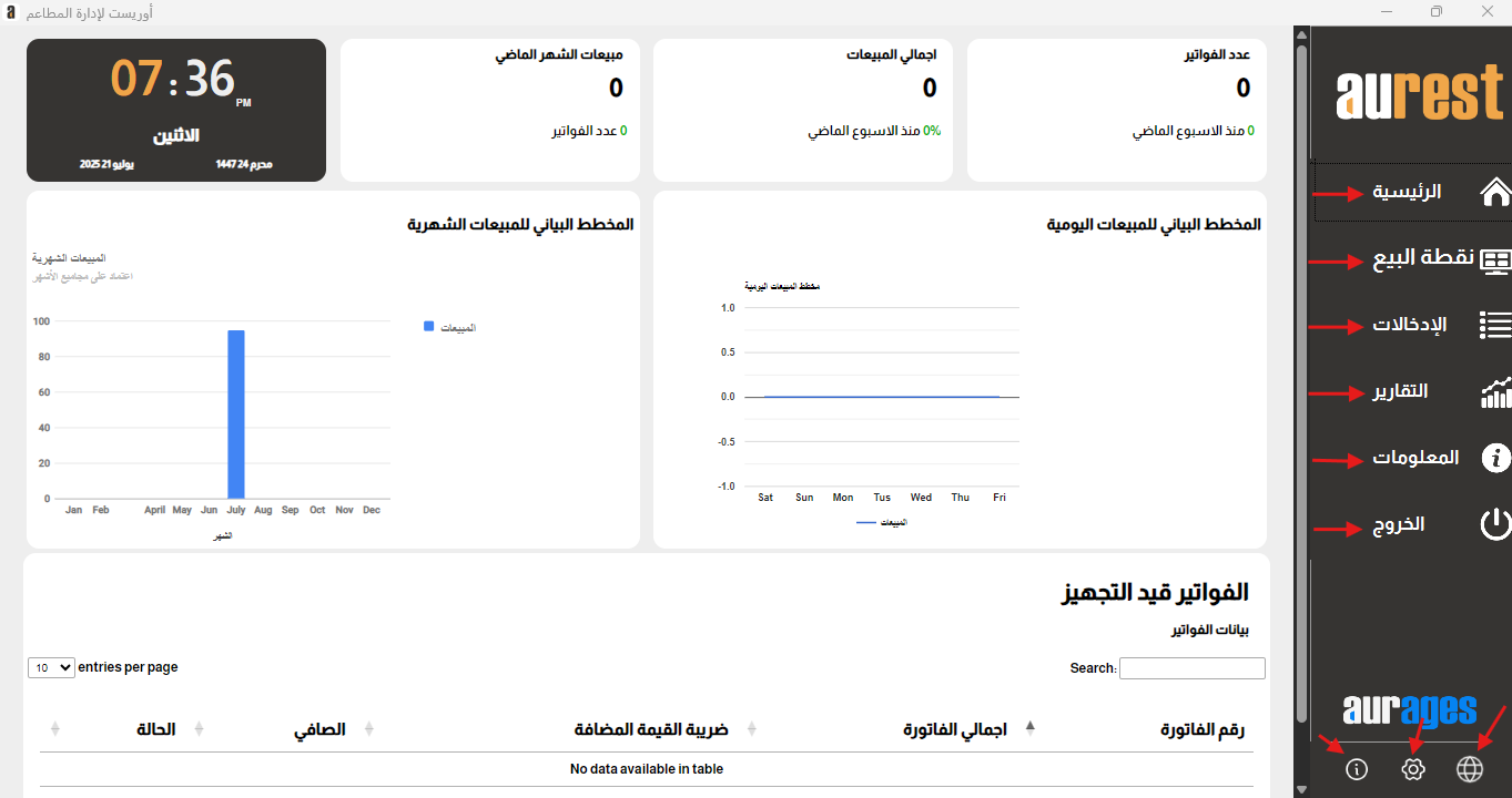 ✳ تُعد هذه الشاشة المحور الأساسي لجميع العمليات اليومية داخل المطعم.