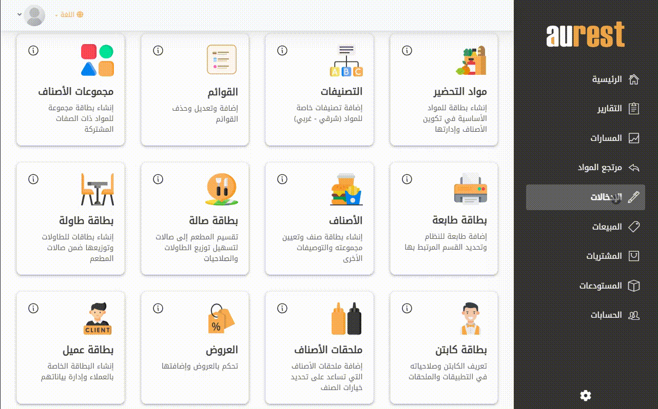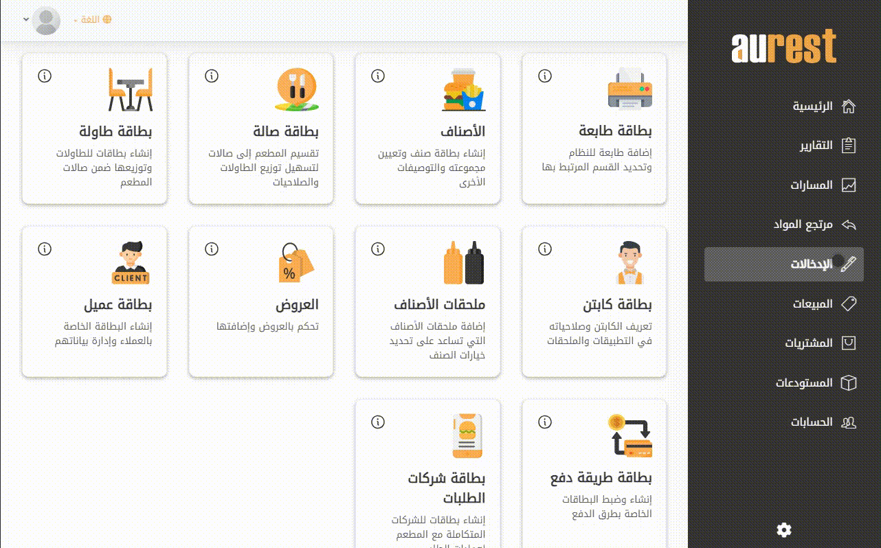 في هذه المرحلة، يقوم المستخدم بأعداد بيئة التشغيل الأساسية داخل المطعم أو الكافيه، من خلال إضافة الصالات والطاولات والكباتن. هذه الخطوة ضرورية لتجهيز النظام لاستقبال الطلبات وربطها بالمواقع الصحيحة داخل المنشأة.