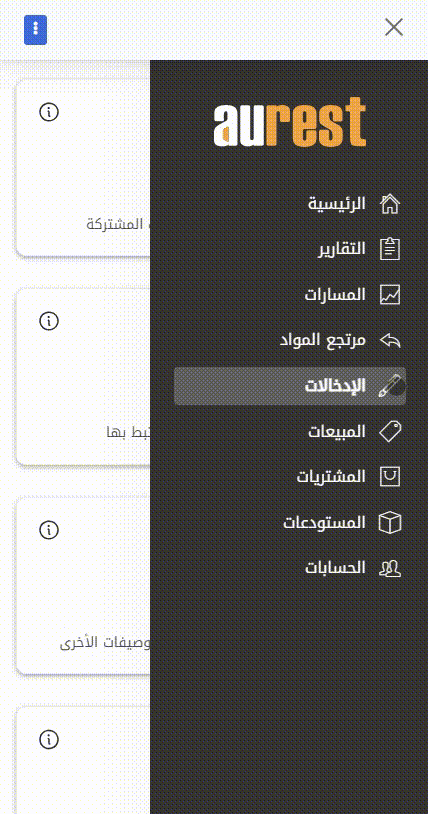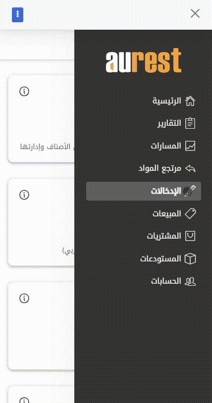 من القائمة الجانبية ➤ الإدخالات ➤ مواد التحضير.