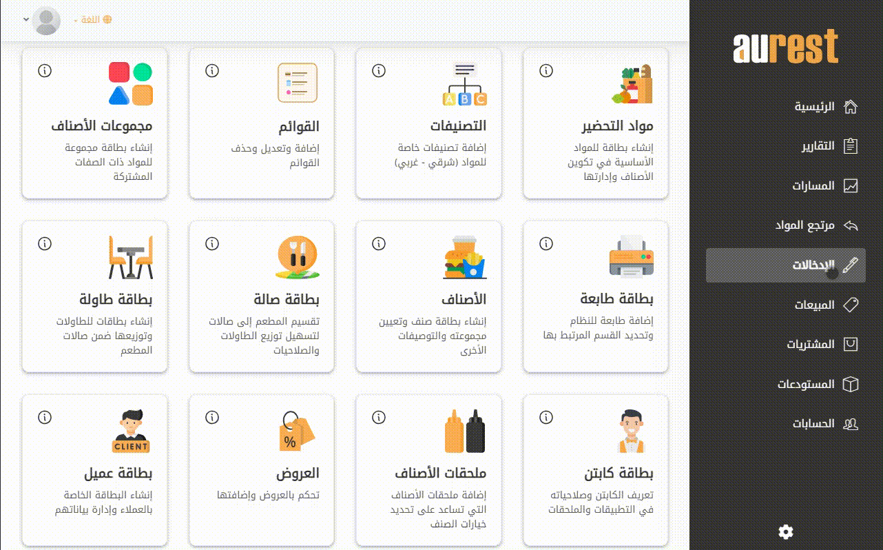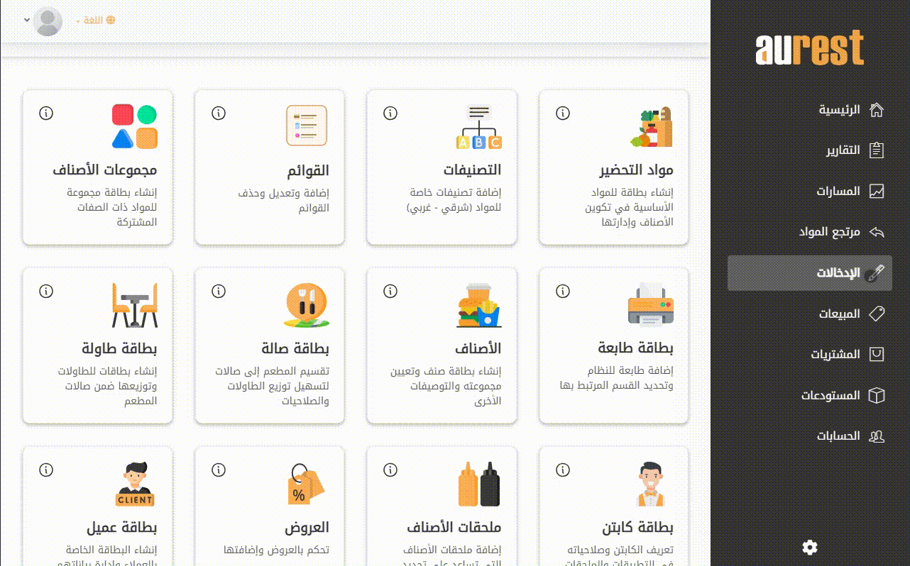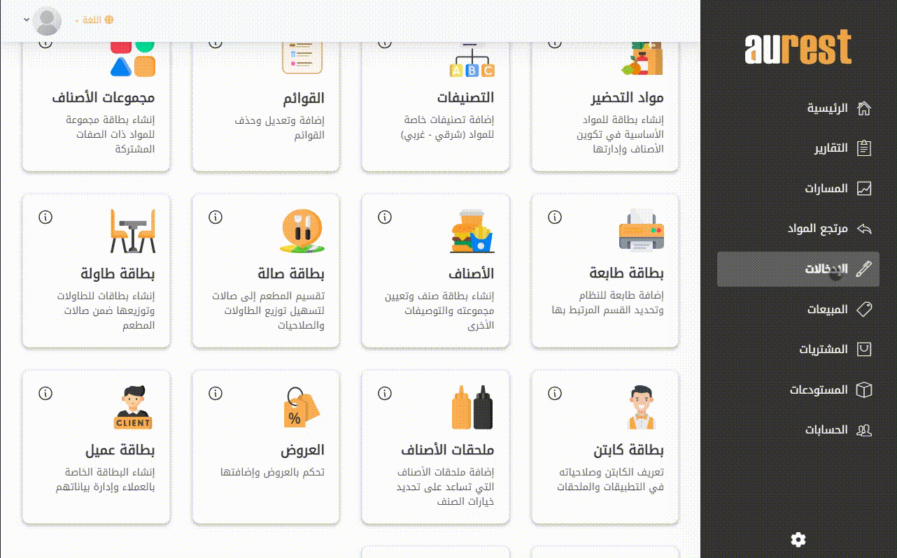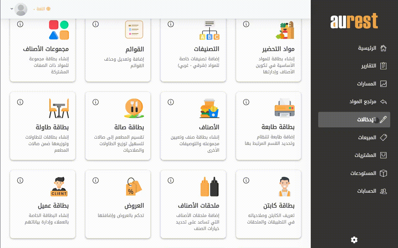 في هذه المرحلة، يبدأ المستخدم ببناء قائمة المطعم أو الكافيه من خلال إضافة الأصناف، وتنظيمها ضمن مجموعات وتصنيفات، بالإضافة إلى ضبط الملحقات، مواد التحضير، العروض، والقوائم. يُعد هذا الإعداد حجر الأساس الذي تُبنى عليه كل عمليات البيع داخل النظام.