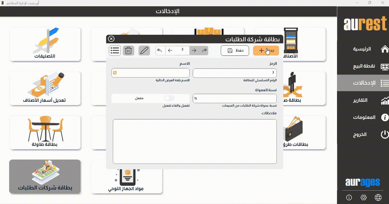 من القائمة الجانبية: الإدخالات → بطاقة شركات الطلبات
