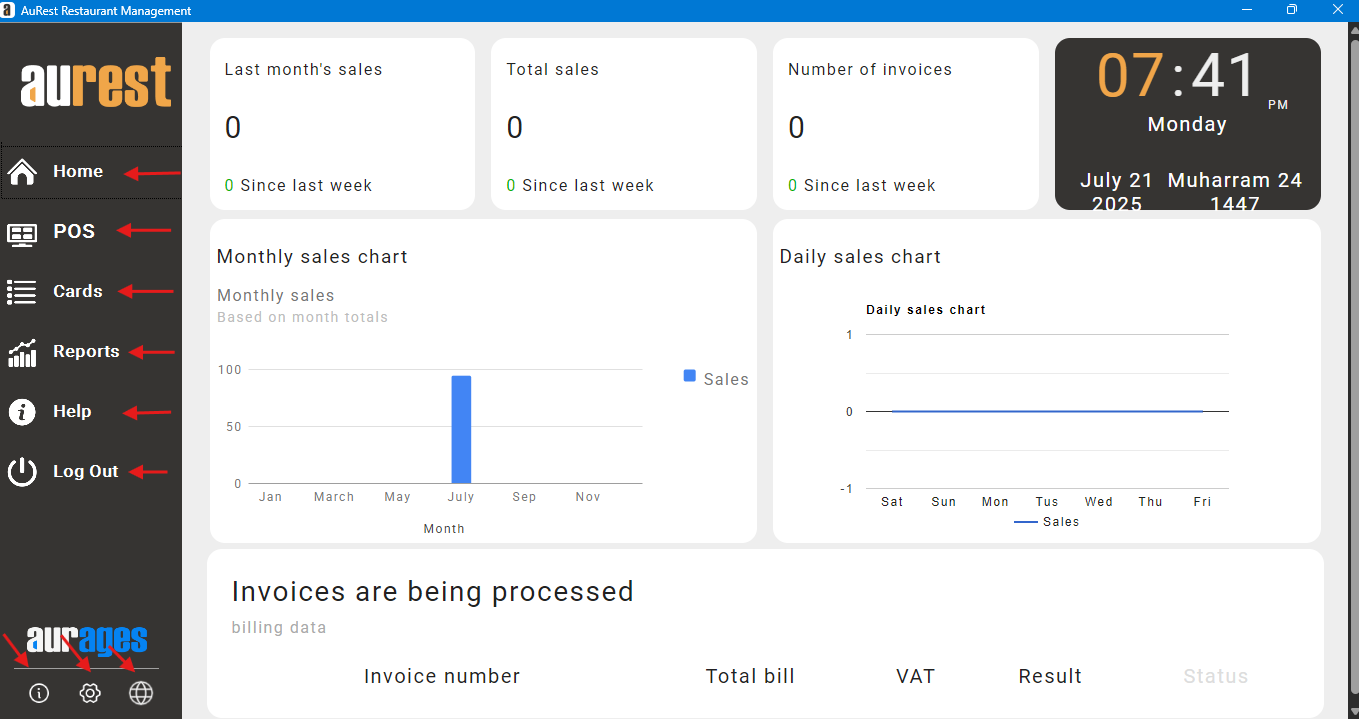 Aurest is a smart and integrated system specifically designed to manage restaurant and café operations. It offers a simple, flexible interface suitable for all users, along with powerful tools for order processing, sales tracking, report generation, and settings management. In this article, we’ll take a comprehensive tour through the key components and functions of the system.