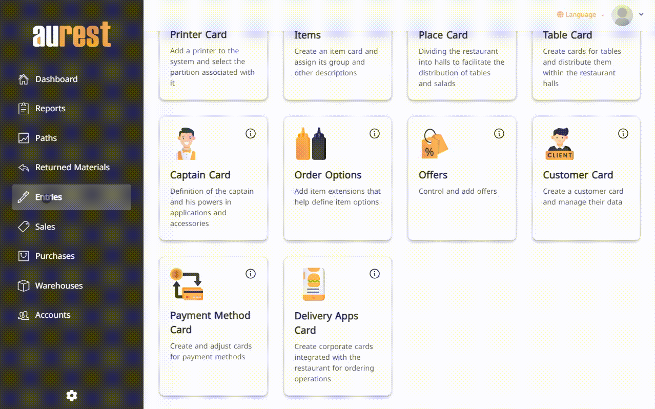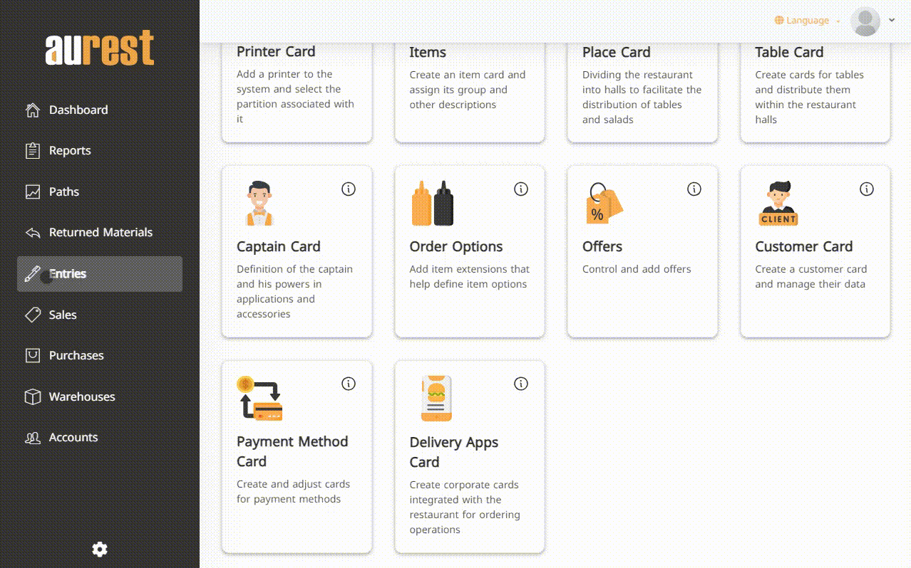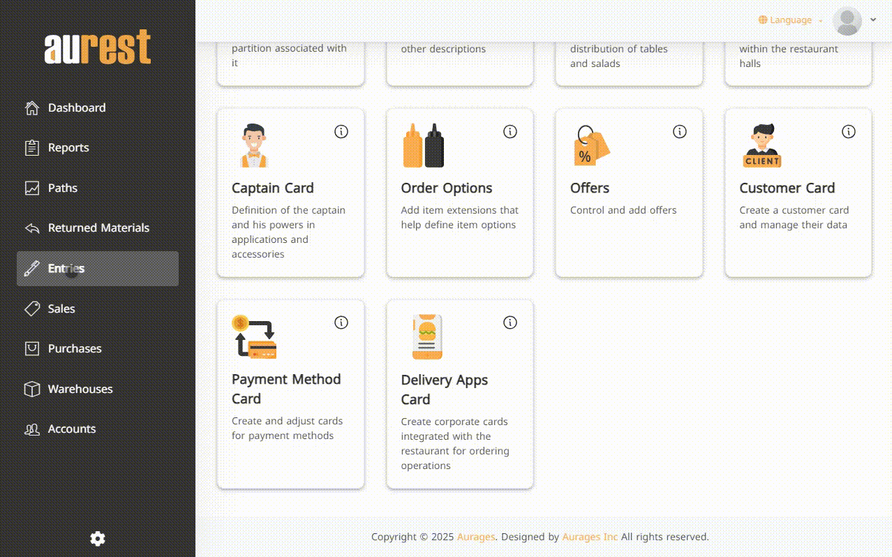 1. From the side menu ➤ EntriesDelivery Apps Card.