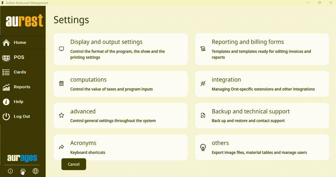 Within the Display & Output Settings section in Aurest system, the Other Settings panel provides a range of optional controls that allow you to fine-tune system behavior. These include custom labels for item modifiers, warehouse quantity display settings, and alert messages during key actions — all designed to enhance system accuracy and user experience.