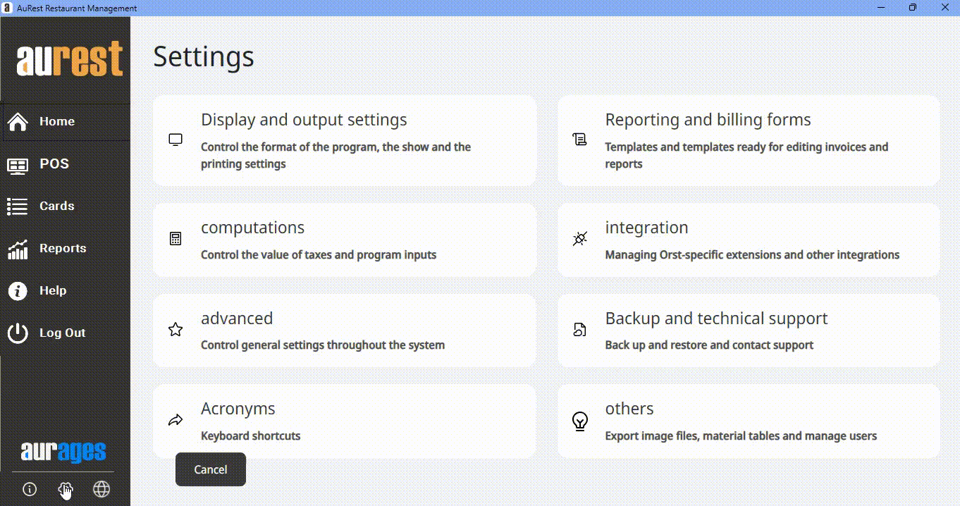 Aurest provides advanced settings for managing output and printing across various departments within the establishment. These settings cover customer invoices, captain orders, and kitchen orders. The goal is to tailor the printing process according to the business needs while ensuring accuracy, clarity, and speed throughout all service stages.